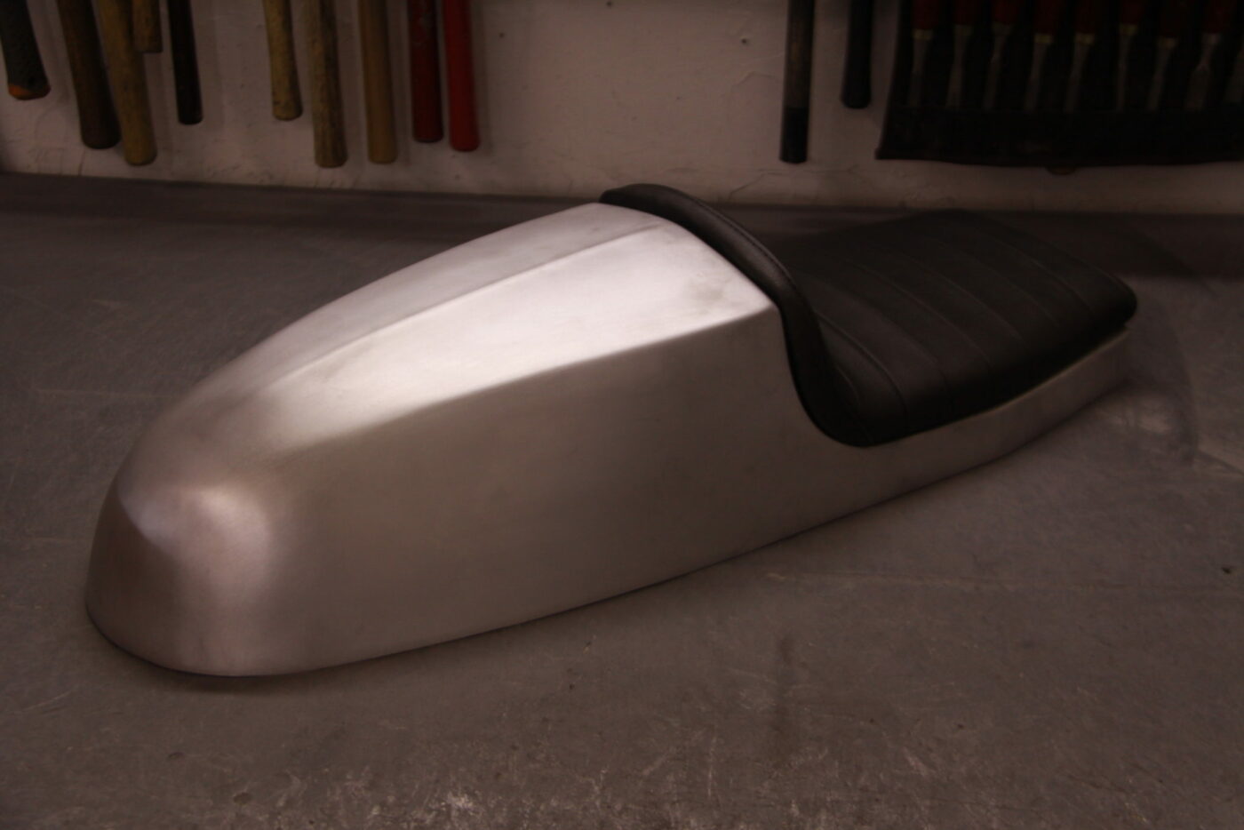 The workshop specialises in extensive hand-fabrication, creating one-off bespoke components including hand-formed metal bodywork and custom fuel tanks. Bespoke subframes and structural components, sculptural brackets and unique metal elements are tailored for each project.